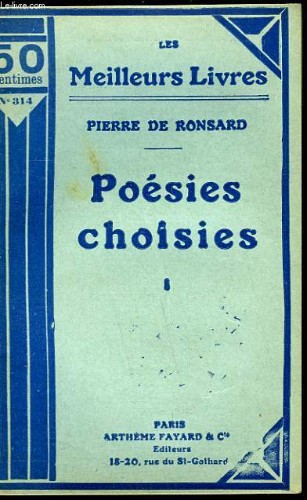 COLLECTION LES MEILLEURS LIVRES N°314- Les Odes- Les amours de Cassandre- Les gaité. Classification Dewey : 841-Poésie