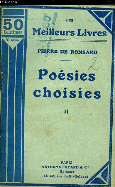 COLLECTION LES MEILLEURS LIVRES N°314- Les Odes- Les amours de Cassandre- Les gaité. Classification Dewey : 841-Poésie