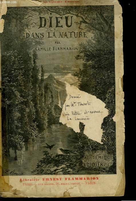 L'ouvrage est en cinq livres : La force et la matière ; La vie ; l'Âme ; Destination des êtres et des choses ; Dieu. Camille Flammarion (1842-1925), qui fut un adepte du spiritisme, présente l'apport du positivisme à la connaissance d'un Dieu créateur du "plan de la nature". Bon état d’occasion