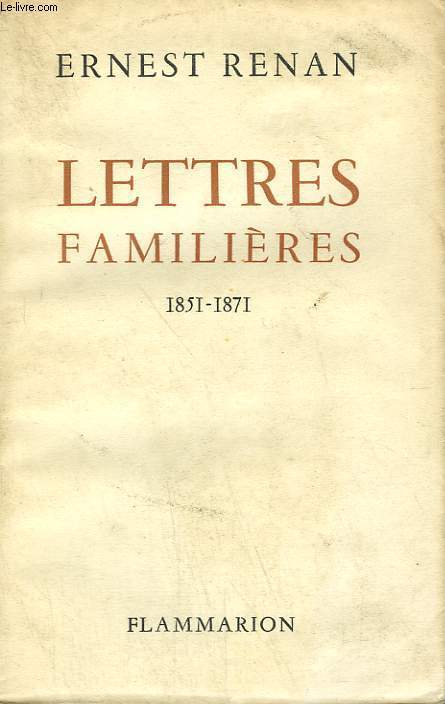 Paris Flammarion 1947 In-12, broché, couverture imprimée. Edition originale de ce choix de lettres couvrant la période de 1851 à 1871, comportant une préface d'Henriette Psichari, ornée d'un portrait de l'auteur par Henry Scheffer et d'une photographie d'Henriette Renan. Un des 110 premiers exemplaires numérotés sur chiffon de Lana.