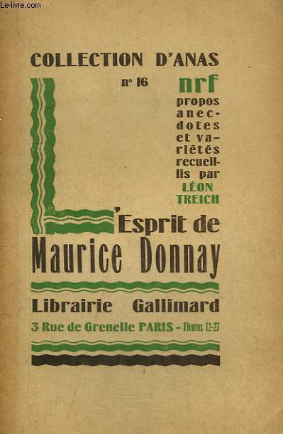 Collection d'anas sous la direction de Léon Treigh. Propos, anecdotes et variétés recueillis par Léon Treigh. Classification Dewey : 840-Littératures des langues romanes. Littérature française