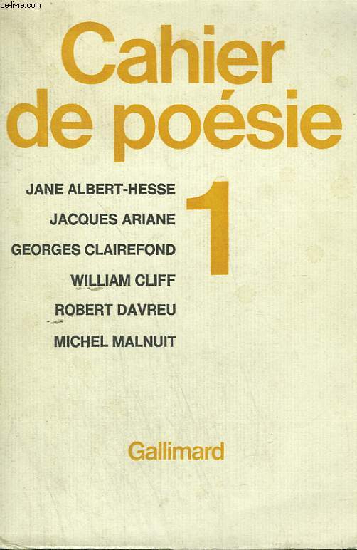 GALLIMARD .. 1973.. In-8. Broché. Bon état, Couv. convenable, Dos satisfaisant, Intérieur acceptable. 225 pages. Couverture rempliée.. . . . Classification Dewey : 841-Poésie