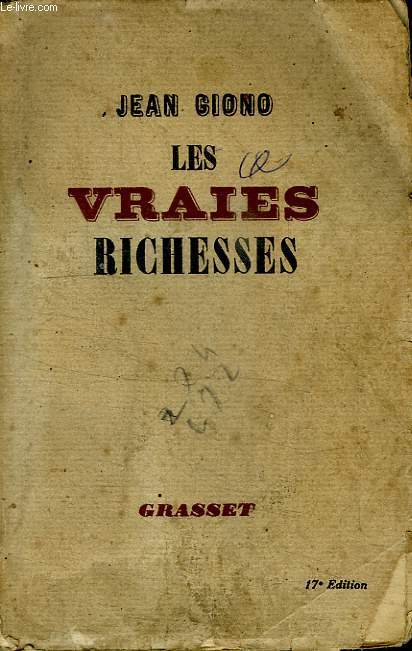 1937 1937. Jean Giono: Les Vraies Richesses/ Grasset 1937