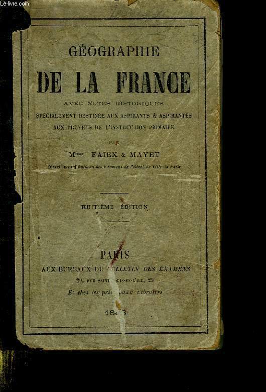 AUX BUREAUX DES BULLETINS DES EXAMENS.. 1881. In-8. Cartonnage d'éditeurs. A restaurer, Couv. défraîchie, Dos abîmé, Quelques rousseurs. 527 pages. Le dos toilé est partielement arraché. L'ouvrage est à relier.. . . . Classification Dewey : 372.89-Livre scolaire : histoire / géographie