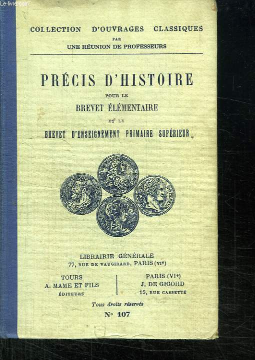 N°107, collection d'ouvrages classiques. Classification Dewey : 372.89-Livre scolaire : histoire / géographie