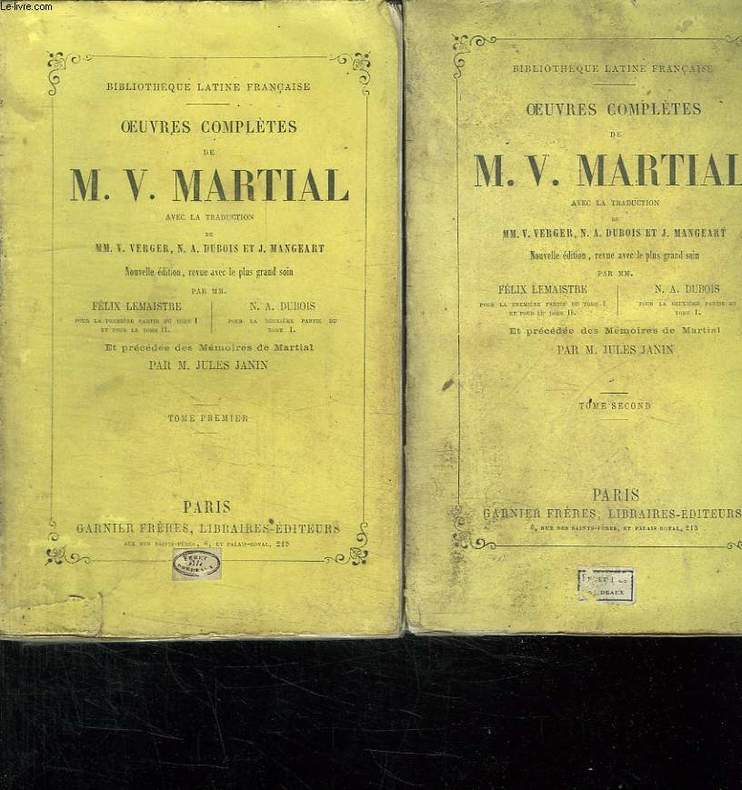 Traduction de VERGER MV , DUBOIS A ET MANGEART J. Nouvelle édition revue avec le plus grands soin par FELIX LEMAISTRE ET DUBOIS NA. Précédée des mémoires de Martial par JULES JANIN. Classification Dewey : 840-Littératures des langues romanes. Littérature française