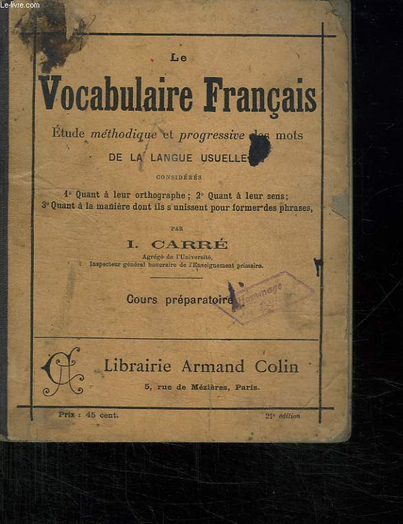 COLIN.. 1896. In-12. Cartonné. Etat d'usage, Tâchée, Dos frotté, Intérieur acceptable. 47 pages. Tampon sur le premier plat de couverture.. . . . Classification Dewey : 372.6-Livre scolaire : français