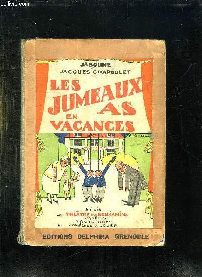 Les jumeaux as en vacances suivis de théâtre des Benjamins saynètes,monologues et comédies à jouerin 8 demi-toile,premier plat illustré en couleurs avec damiers bleus en encadrement(qui a fait le succès de la marque LUSTUCRU)Faux-titre,titre,126 pages,illustrations en couleurs dans le texte de Jacques TOUCHET collection du "Per’Lustucru" coins émoussés,bon état d’ensemble