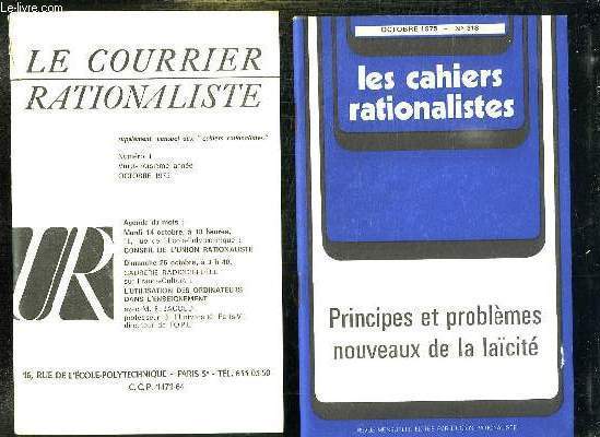 UNION RATIONALISTE.. 1975. In-8. Broché. Bon état, Couv. convenable, Dos satisfaisant, Papier jauni. 48 + 8 pages. La première page du supplément est déchirée mais sans manque.. . . . Classification Dewey : 70.49-Presse illustrée, magazines, revues