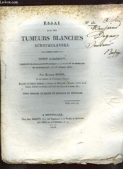 MARTEL.. 1828. In-4. Broché. Etat d'usage, Livré sans Couverture, Dos abîmé, Non coupé. 22 pages. Note au stylo sur la page de titre. Dos absent.. . . . Classification Dewey : 610-Sciences médicales. Médecine