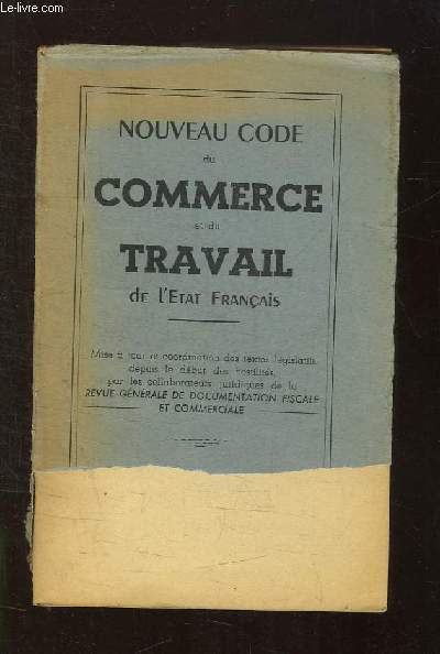 FRANCAISES.. 20 JUIN 1942. In-8. Broché. Etat passable, Couv. partiel. décollorée, Dos fané, Pliures. 410 pages. Quelques pages sont cornées. Gros manque sur le premier plat de couverture.. . . . Classification Dewey : 340-Droit