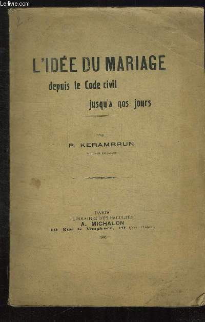 MICHALON.. 1909. In-8. Broché. Bon état, Couv. légèrement passée, Dos plié, Non coupé. 136 pages.. . . . Classification Dewey : 346-Droit privé, civil