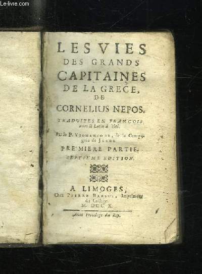 BARBOU.. 1710. In-16. Relié plein cuir. Etat passable, Couv. légèrement passée, Dos très frotté, Intérieur acceptable. 223 pages. Texte latin en regard du texte françois.. . . . Classification Dewey : 840-Littératures des langues romanes. Littérature française