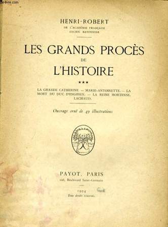 Tome 3: La Grande Catherine - Marie-Antoinette - La mort du Duc d'Enghien - La Reine Hortense - Lachaud. Classification Dewey : 900-GEOGRAPHIE, HISTOIRE, SCIENCES AUXILIAIRES DE L'HISTOIRE