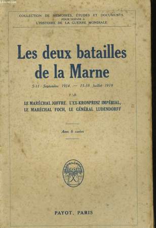 Par le maréchal Joffre, l'Ex-Kronprinz impérial, le maréchal Foch et le Général Ludendorff. Classification Dewey : 940.3-Première Guerre mondiale 1914-1918