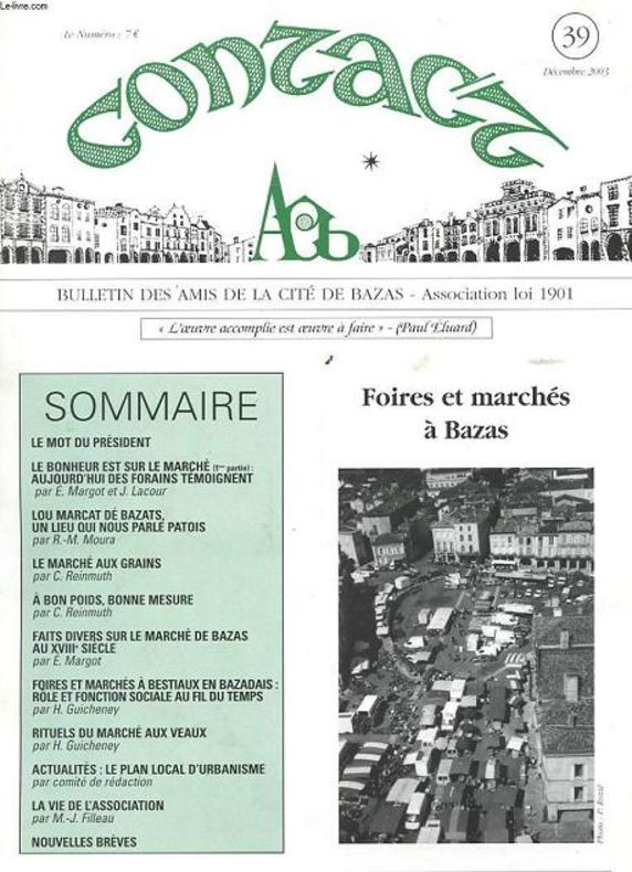LES AMIS DE BAZAS. 2003. In-4. Broché. Bon état, Couv. convenable, Dos satisfaisant, Intérieur frais. 23 pages. Couverture illustrée en couleur. Nombreuses illustrations en noir et blanc dans le texte.. . . . Classification Dewey : 908.447-Régionalisme : Aquitaine