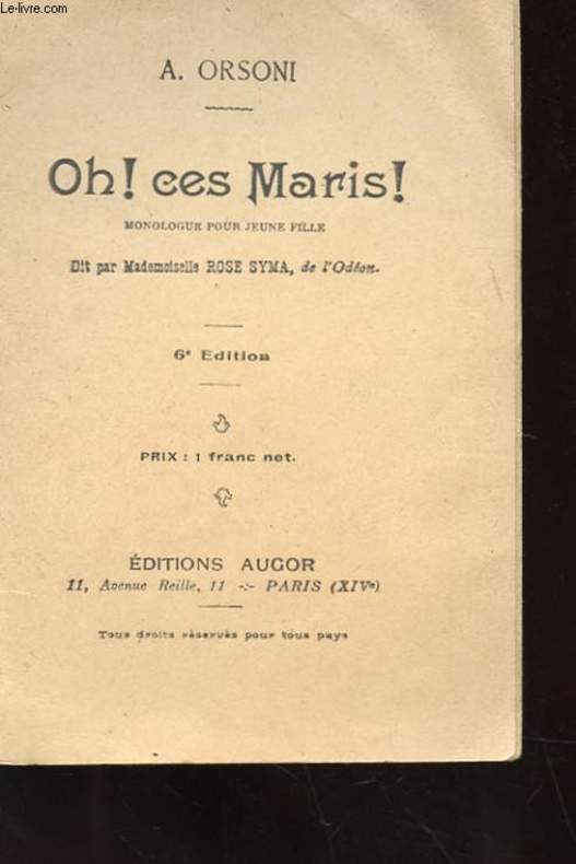 AUGOR. Non daté. In-8. Broché. Bon état, Couv. défraîchie, Dos satisfaisant, Intérieur frais. 8 pages.. . . . Classification Dewey : 792-Théâtre