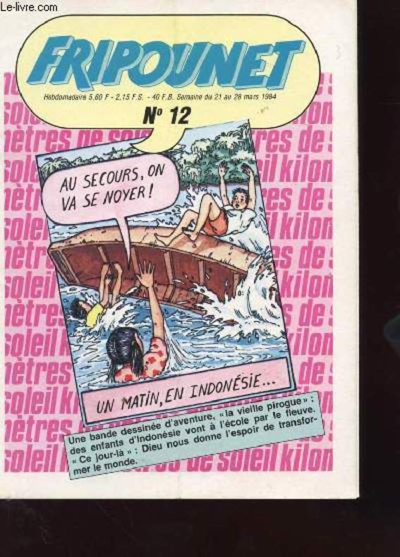 FRIPOUNET. 28 mars 1984. In-8. Broché. Bon état, Couv. convenable, Dos satisfaisant, Intérieur frais. 29 pages de bandes dessinées, dessins et photos.. . . . Classification Dewey : 843.0692-Livres d'enfants