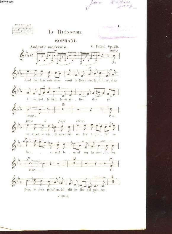 IMP. LAROCHE. NON DATE. In-4. En feuillets. Etat d'usage, Couv. convenable, Dos satisfaisant, Intérieur frais. 4 pages. Tampon.. . . . Classification Dewey : 780-Musique