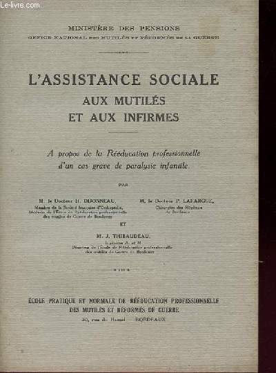 MINISTERE DE PENSIONS. NON DATE. In-8. Broché. Bon état, Couv. convenable, Dos satisfaisant, Intérieur frais. 12 pages. Quelques photos en noir et blanc, hors texte.. . . . Classification Dewey : 610-Sciences médicales. Médecine
