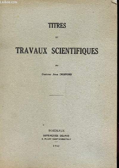 Sommaire : état civil - titres et fonctions - ouvrages et travaux - exposé des titres et travaux - travaux . Classification Dewey : 500-SCIENCES DE LA NATURE ET MATHEMATIQUES