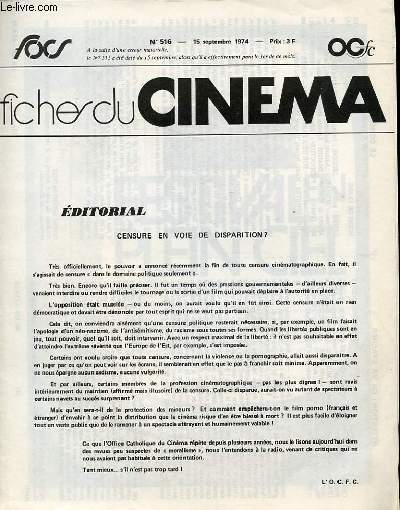 EDITIONS O.C.F.C. 1974. In-4. Broché. Bon état, Couv. convenable, Dos satisfaisant, Intérieur frais. 16 pages. Deux illustrations de publicités en noir et blanc hors texte.. . . . Classification Dewey : 791.43-Cinéma
