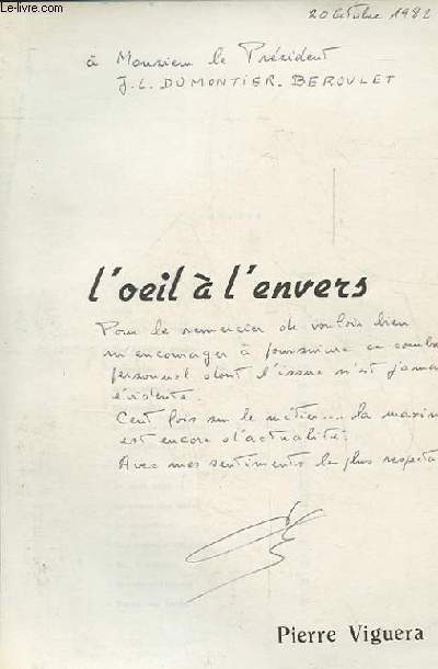 CHEZ L'AUTEUR. NON DATE. In-8. Broché. Bon état, Couv. convenable, Dos satisfaisant, Intérieur frais. 102 pages. Ecriture tapuscrite. Manque le 1er plat et le dos. 2ème plat partiellement débroché. Envoi de l'auteur sur la page de titre (?).. . . . Classification Dewey : 800-LITTERATURE (BELLES-LETTRES)