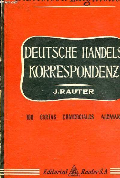 RAUTER S.A/ BIBLIOTECA LINGUISTICA. 1956. In-12. Cartonnage d'éditeurs. Etat d'usage, Couv. légèrement passée, Dos abîmé, Intérieur acceptable. 146 pages. Texte en allemand en regard du texte en espagnol. 100 cartas comerciales alemanas. Signature d'un particulier sur la page de titre. Un manque en tête de coiffe. Mors fendus.. . . . Classification Dewey : 400-LANGUES