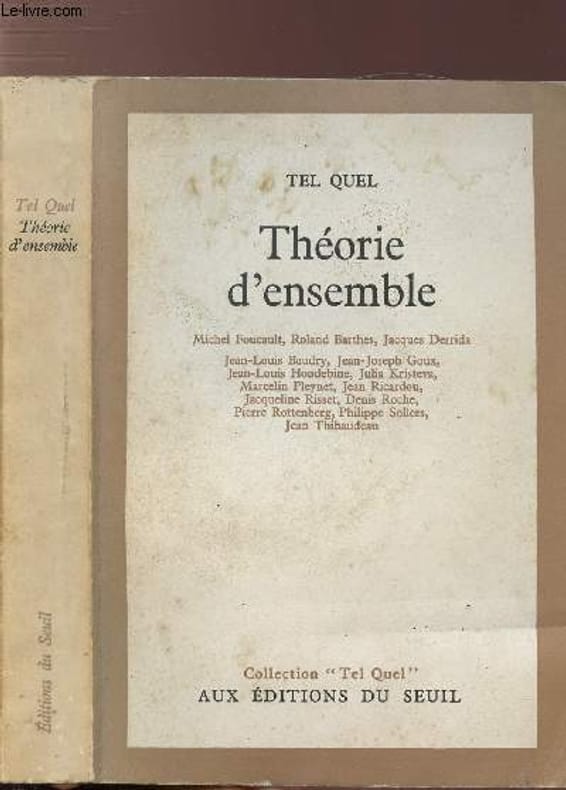 Michel Foucault, Roland Barthes, Jacques Derrida, Jean-Louis Baudry, Jean-Joseph Goux, Jean-Louis Houdebine, Julia Kristeva, Marcelin Pleynet, Jean Ricardou, Jacqueline Risset, Denis Roche, Pierre Rottenberg, Philippe Sollers, Jean Thibaudeau. Classification Dewey : 100-PHILOSOPHIE ET DISCIPLINES CONNEXES