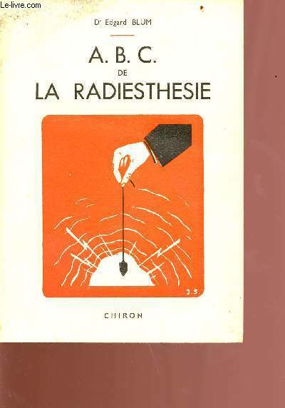 quelques figures dans le texte en noir et blanc 1ere édition, 1976 Contents, Chapitres : Avant-propos - 1. La radisthésie, moyen de connaissance : Qu'est-ce que la radiesthésie (Théorie dite physique - Réalité de la radiesthésie) - Exercices de la radiesthésie (Bases fondamentales - Qualités individuelles - Pratique de la radiesthésie) - 2. Domaines d'application de la radiesthésie : Hydrologie ou science des sourciers - Minéralogie - Archéologie - Trésors - Gestion d'affaires - Etudes psychologiques et orientations professionnelles - Recherches policières, personnes disparues - Chasse, pêche - Courses de chevaux - Agriculture - Elevage - Radiesthésie médicale - Conclusion et bibliographie couverture à peine jaunie, avec d'infimes traces de pliures aux coins des plats, sinon bon état, intérieur propre, papier à peine jauni, très légères pliures sans aucune gravité aux coins des premières pages, cela reste un bon exemplaire
