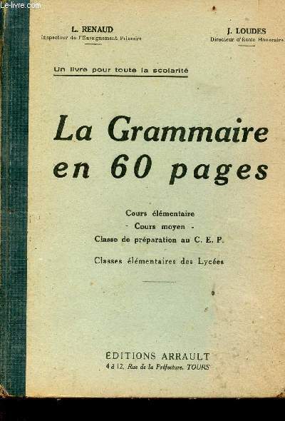 Editions Arrault. non daté. In-8. Cartonné. Etat d'usage, Plats abîmés, Coiffe en pied abîmée, Intérieur acceptable. 60 pages. . . . Classification Dewey : 372.6-Livre scolaire : français