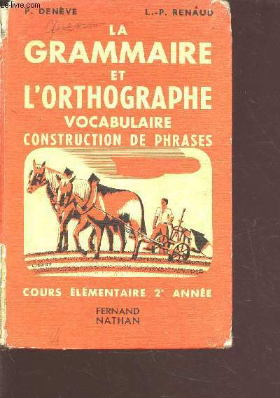Fernand Nathan. 1954. In-12. Relié. Etat d'usage, Coins frottés, Dos abîmé, Quelques rousseurs. 206 pages - quelques illustrations en noir et blanc dans le texte - annotation sur la page de titre- coiffes abîmées. . . . Classification Dewey : 372.6-Livre scolaire : français