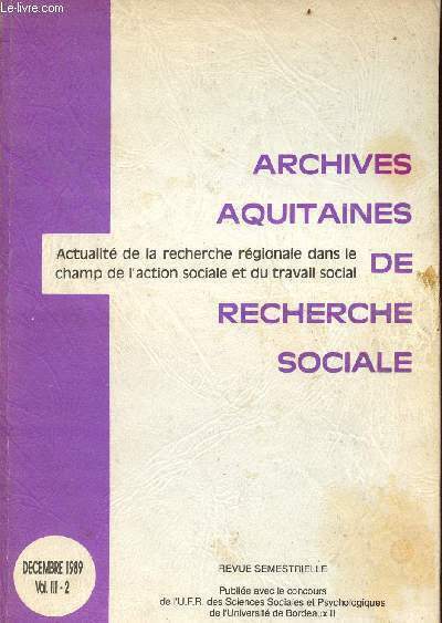 UFR des Sciences sociales et spychologiques de l'université de Bordeaux II. 1990. In-8. Broché. Etat d'usage, Tâchée, Dos satisfaisant, Rousseurs. 220 pages - plats tâchés - contreplats et pages de gardes tâchés. . . . Classification Dewey : 300-SCIENCES SOCIALES