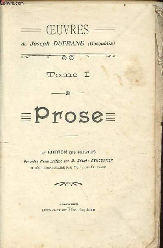 Dufrane-Friart. 1907. In-8. Broché. A relier, Livré sans Couverture, Dos abîmé, Papier jauni. XLIII + 127 pages - plats absents, ouvrage livré sans couverture - dos absent - déchirure sur la page 127 altérant la lecture - texte framerisois. . . . Classification Dewey : 840.091-XX ème siècle