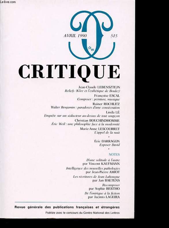 EDITIONS DE MINUIT. 1990. In-8. Broché. Bon état, Couv. convenable, Dos satisfaisant, Intérieur frais. Paginé de 252 à 342.. . . . Classification Dewey : 100-PHILOSOPHIE ET DISCIPLINES CONNEXES