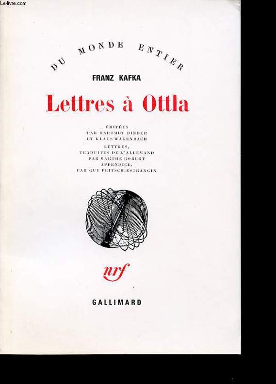 Paris Gallimard, coll. "Du Monde entier" 1978 1 vol. broché in-8, broché, 250 pp., 30 planches hors-texte avec de nombreux portraits et fac-similés. Editées par Hartmut Binder et Kalus Wagenbach. Lettres traduites de l'allemand par Marthe Robert, appendice, par Guy Fritsch-Estrangin. Edition originale française en service de presse. Bon exemplaire.