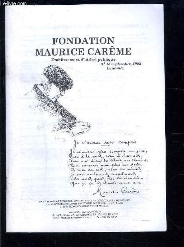FONDATION MAURICE CAREME. 2002. In-8. Broché. Bon état, Couv. convenable, Dos satisfaisant, Intérieur frais. 32 pages. . . . Classification Dewey : 70.49-Presse illustrée, magazines, revues