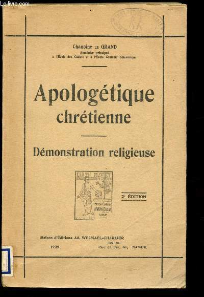 Ad. Wesmael-Charlier. 1929. In-8. Broché. Etat d'usage, Couv. convenable, Dos satisfaisant, Papier jauni. 388 pages. Quelques pliures. 1 tampon sur la page de titre et sur la couverture. 1 étiquette collée sur le dos.. . . . Classification Dewey : 230-Christianisme. Théologie chrétienne