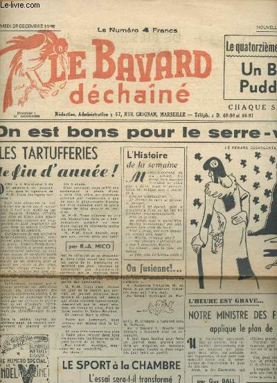 Le bavard déchaîné. 1946. In-4. Broché. Etat d'usage, Couv. convenable, Dos satisfaisant, Papier jauni. 4 pages augmentées de nombreuses illustrations en noir et blanc,dans le texte. Quelques déchirures n'altérant pas le texte.. . . . Classification Dewey : 70.49-Presse illustrée, magazines, revues