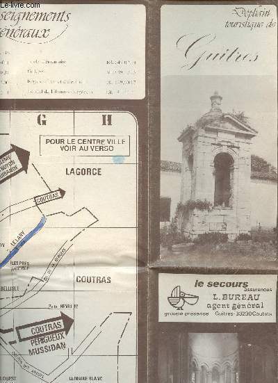 Inconnue. Non daté. In-8. En feuillets. Bon état, Couv. convenable, Dos satisfaisant, Quelques rousseurs. Dépliant d'environ 60cm x 40cm. Illustré de quelques photos et plans en sépia. Avec de nombreuses publicités pour les commerces environnants. Plan en sépia/mmaron et blanc, dont la riviè, l'isle, à été coloriée en bleu.. . . . Classification Dewey : 908.447-Régionalisme : Aquitaine