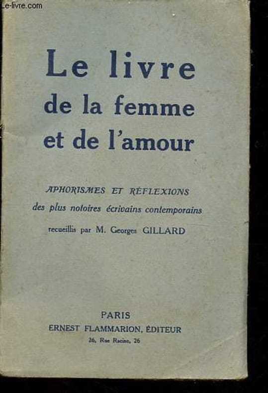 Ernest Flammarion. 1924. In-12. Broché. Etat d'usage, Couv. légèrement pliée, Dos plié, Rousseurs. 280 pages - papier jauni, coins frottés, coiffes abimées, petit accro sur le dos, quelques pages non coupées.. . . . Classification Dewey : 305.4-La femme