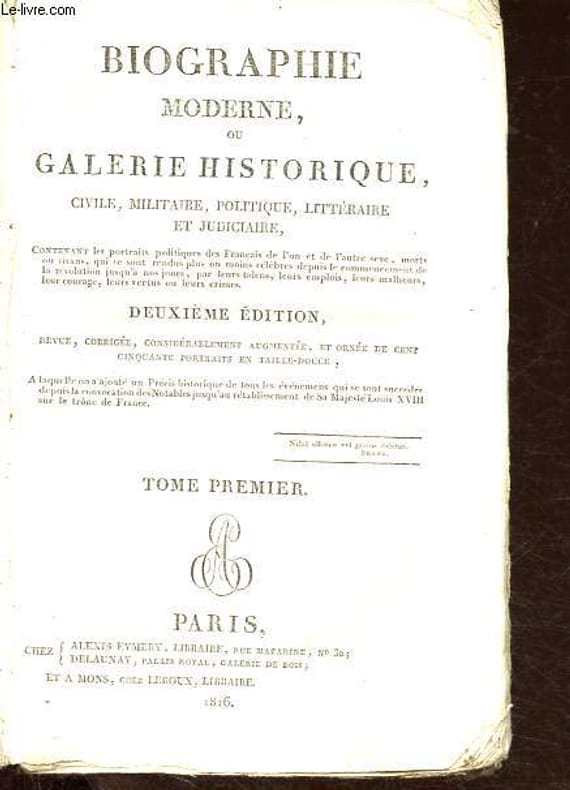 Alexis Eymery / Delaunay / Leroux. 1816. In-8. Broché. Etat d'usage, Coins frottés, Coiffe en tête abîmée, Quelques rousseurs. 400 pages, texte en 2 colonnes - papier jauni, petite déchirure en coin en pied du 1er plat, dos plié.. . . . Classification Dewey : 300-SCIENCES SOCIALES