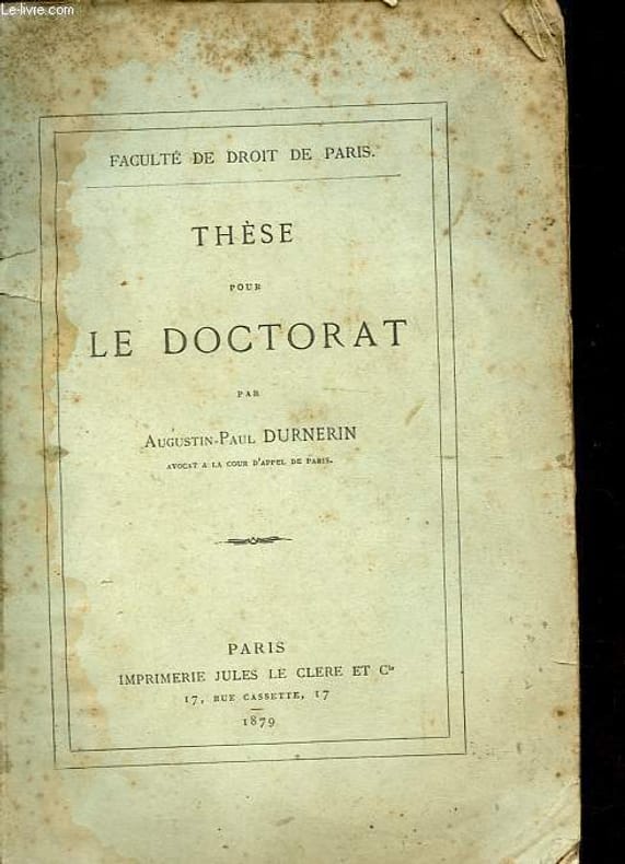 Imprimerie Jules Le Clere et Cie. 1879. In-8. Broché. Etat d'usage, Tâchée, Dos abîmé, Rousseurs. 142 pages - papier jauni, pliures sur les plats et quelques pages, coins frottés, déchirures sur le dos partiellement manquant, dos fendu, 1er plat et quelques pages partiellement désolidarisés.. . . . Classification Dewey : 340-Droit
