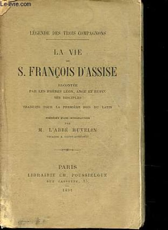 Collection Légende des trois compagnons. Introduction par l'abbé Huvelin. Traduit du latin. Classification Dewey : 235-Les saints