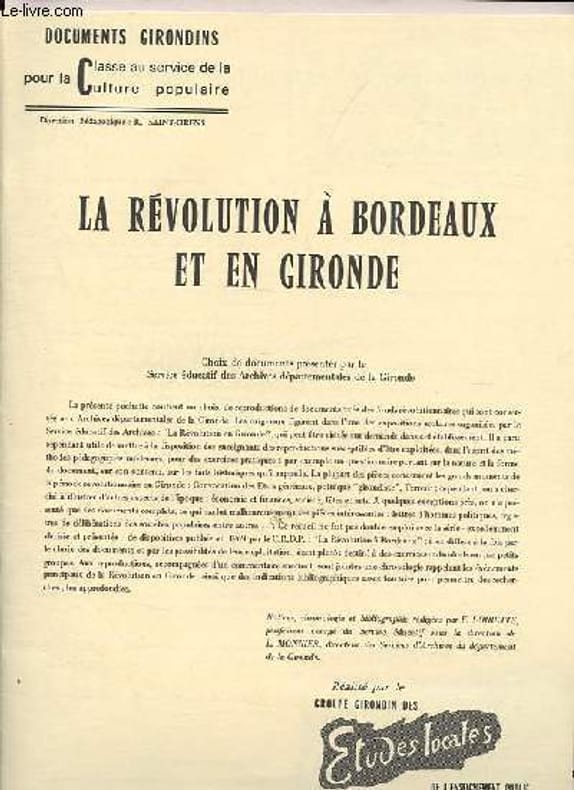 Collection Documents Girondins pour la classe au service de la culture populaire. Classification Dewey : 944.04-Révolution de 1789