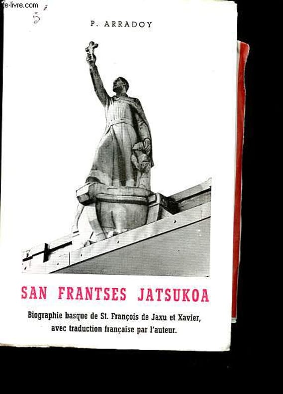 Izarra. 1966. In-8. Broché. Etat d'usage, Couv. légèrement pliée, Coiffe en tête abîmée, Papier jauni. 363 pages, jaquette conservée, nombreuses planches de photos, illustrations en noir et blanc, en supplément plusieurs coupures de presse - Texte en basque et en français - coiffes de la jaquette abimées, annotation à l'encre sur son 1er plat.. Avec Jaquette. . . Classification Dewey : 235-Les saints
