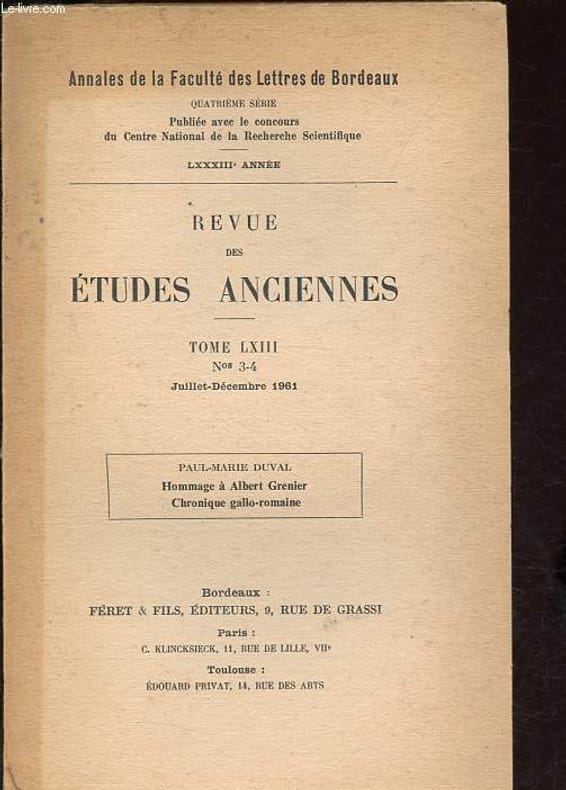 Féret & Fils. 1961. In-8. Broché. Etat d'usage, Coins frottés, Coiffe en pied abîmée, Papier jauni. paginé de 363 à 432 pages quelques illustrations en noir et blanc dans le texte et planche de photo en noir et blanc - coiffes abimées.. . . . Classification Dewey : 70.49-Presse illustrée, magazines, revues
