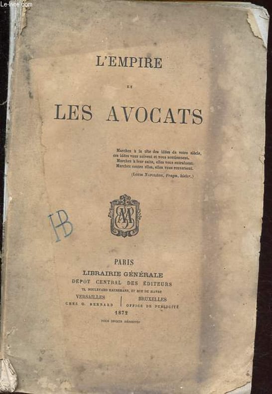 Librairie générale. 1872. In-8. Broché. Etat d'usage, 2ème plat abîmé, Dos abîmé, Quelques rousseurs. 103 pages - papier jauni, 2e plat et dos manquants, pliures et petites déchirures sur le 1er plat, quelques pages partiellement désolidarisées, annotation au crayon couleur sur le 1er plat.. . . . Classification Dewey : 320-Science politique