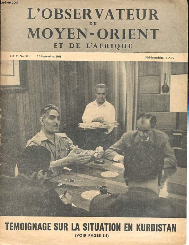 Sommaire: Les Nations-Unies sans Hammarskjoeld - Choses vues au Kurdistan - Epreuve pour le bloc de Casablanca - A Gaza: humanisme et propagande - Le Caire veut gagner sur tous les tableaux - Israel, emprunt forcé - Le FLN reste sur l'expectative - Vers un front anti-OAS ? - Maroc, le commerce se détourne de la France - Le Maroc cherche à se moderniser - Le Tchat carrefour des Afriques. Classification Dewey : 70.49-Presse illustrée, magazines, revues