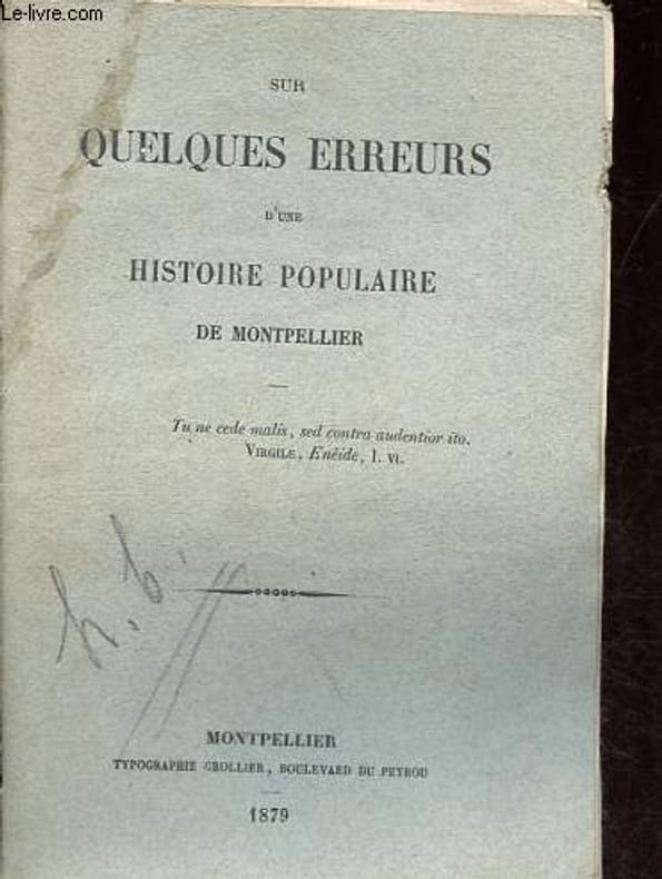 Grollier. 1879. In-8. Broché. A relier, Tâchée, Dos abîmé, Papier jauni. 89 pages - anotation au crayon sur le 1er plat, coins frottés, dos partiellement manquant et fendu, ouvrage partiellement désolidarisé.. . . . Classification Dewey : 908.448-Régionalisme : Languedoc-Roussillon